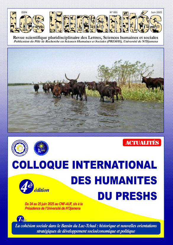 Revue scientifique pluridisciplinaire de Lettres, Sciences Humaines et Sociales(LSHS), publiée par le PRESHS de l’Université de N’Djamena, « Les Humanités » accepte et encourage la publicationdes articles originaux et pertinents en français et en arabe. Son objectif est de produire la recherche, de favoriser des débats autour des thématiques susceptibles de promouvoirdes connaissances et de stimuler le développement au travers des productions scientifiques régulières.